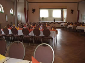 Im Landhausschoenwalde bieten wir Ihnen beste Bedingungen für Ihre Veranstaltung!In unserem großen Saal finden bis zu 160 Personen bequem an Tischen Platz. Eine Bühne mit Beleuchtung und Nebenräumen ist ideal für Ihre Präsentation.